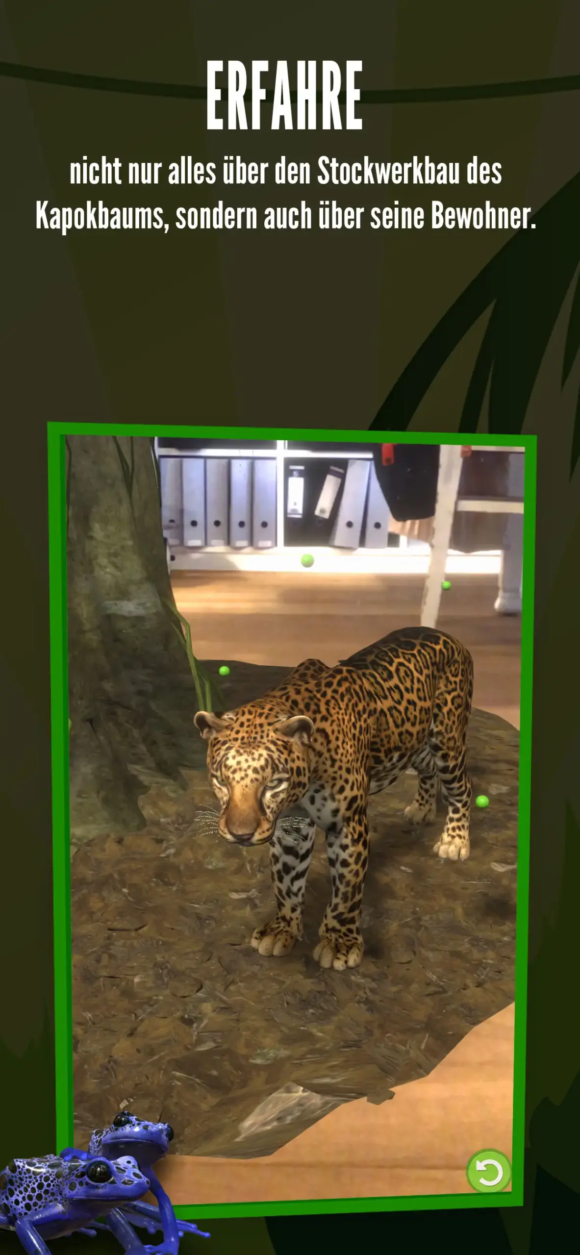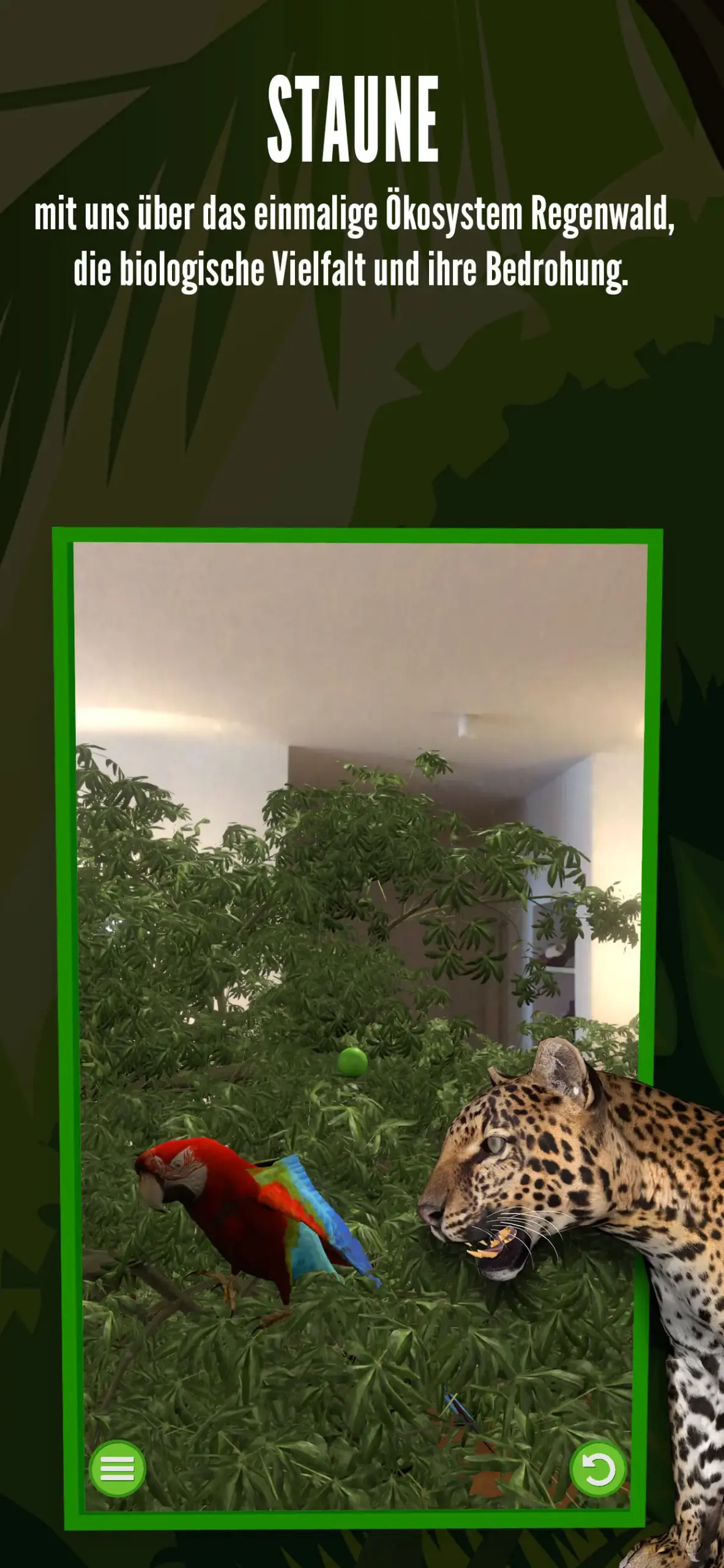 Plötzlich einen knurrenden Jaguar im eigenen Wohnzimmer stehen zu haben – mit echtem Dschungelsound und quakenden Pfeilgiftfröschen – ist eine beeindruckende Erfahrung … – sz_4 (App Store)